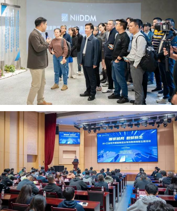 聚焦AI与工业软件在制造业数字化转型中的深度融合,活动以“智驱破局 数赋新生”为主题,旨在助力无锡建设软件特色名城与“人工智能+”标杆城市,推动AI与工业软件为中小企业创新发展赋能。参观国家数字化设计与制造创新中心江苏中心成果展拉开当天活动帷幕。随后,7款聚焦制造业核心环节的AI工业软件依次发布并作现场推介,覆盖设计、生产、数据管理和决策等全流程。